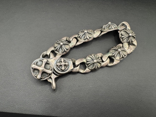 重厚感のあるデザインで、留め具部分にも装飾が施された存在感のあるシルバーアクセサリーです。